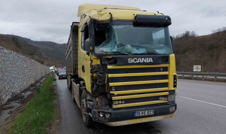 Samsun’da tırın arıza yapan bankette park halindeki kamyoneti yandan biçtiği kazada kamyonet sürücüsü yaralanarak ölümden döndü.