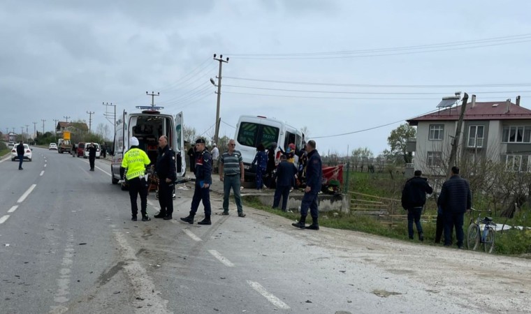 Kaza, Samsun’un Alaçam ilçesi Yakacık mevkisi Samsun Sinop karayolunda meydana geldi. Edinilen bilgiye göre, Ramazan Doğan idaresindeki 55 C 5135 plakalı minibüs ile Cafer Acar yönetimindeki 34 YA 9026 plakalı hafif ticari araç çarpıştı. Kazada, araç sürücüsü Cafer Acar ile Ali Acar, Zübeyde Doğan, Sevcan Yanık, Safiye Yanık, Zeliha Yanık, Emriye Doğan ve Hülya Sarı yaralandı. Yaralılar, Bafra Devlet Hastanesi ile Bafra’da bulunan özel bir hastaneye kaldırılarak tedavi altına alındı. Kaza anı ise güvenlik kamerası tarafından anbean görüntülendi. Kazayla ilgili soruşturma başlatıldı.