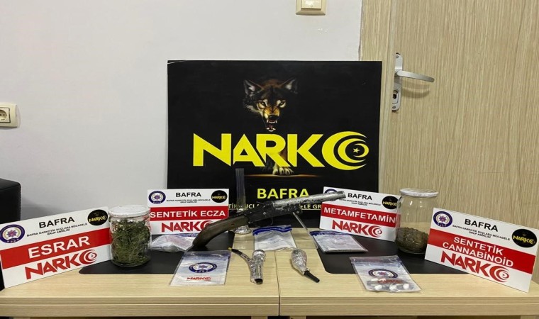 Edinilen bilgiye göre, Samsun Emniyet Müdürlüğü Narkotik Suçlarla Mücadele Şube Müdürlüğü ekipleri ile Bafra İlçe Emniyet Müdürlüğü ve 19 Mayıs İlçe Emniyet Müdürlüğü ekipleri tarafından uyuşturucu operasyonu düzenlendi. Yapılan aramalarda, 752 adet sentetik ecza, 38 gram sentetik kannabinoid, 37,2 gram metamfetamin, 14,16 gram esrar, 2,28 gram skunk, 11 adet ecstasy hap, 2 adet esrarlı sigara, 9 adet uyuşturucu kullanımına yarar aparat, 2 adet ruhsatsız tabanca ve 6 adet tabanca fişeği ele geçirildi.