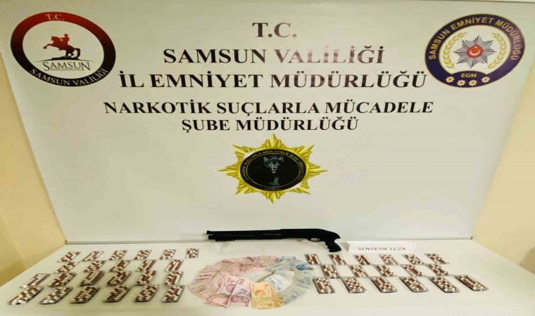 Olay, Samsun’un Canik ilçesi Karşıyaka Mahallesi’nde meydana geldi. Edinilen bilgiye göre, Samsun Emniyet Müdürlüğü Narkotik Suçlarla Mücadele Şube Müdürlüğü ekipleri, M.A.’nın (24) ikamet ettiği adrese operasyon düzenledi. Yapılan aramada, 833 adet sentetik ecza, 1 adet pompalı tüfek ve uyuşturucu madde ticaretinden elde edildiği değerlendirilen 15 bin 960 TL para ele geçirildi. Gözaltına alınan M.A. bugün Samsun Adliyesine sevk edilerek çıkarıldığı mahkemece tutuklandı.