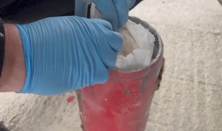 Samsun’da bir tırda arama yapan polis, yangın söndürme tüpü içine gizlenmiş 4 kilo 720 gram metamfetamin ele geçirdi.
