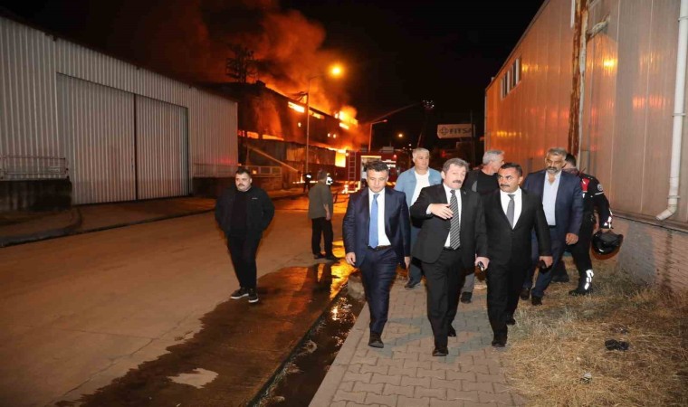 Samsun’da sanayi sitesinde bir yatak ve koltuk fabrikasında çıkan yangını söndürme çalışması devam ediyor. Yangın, bitişikteki fabrikaya da sıçrarken, Samsun Valisi Orhan Tavlı ve Büyükşehir Belediye Başkanı Halit Doğan yangın yerinde incelemelerde bulundu.