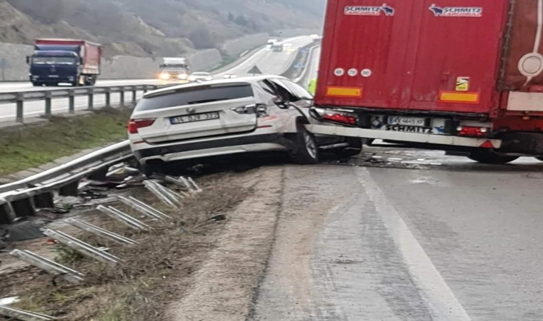 Kaza, Samsun’un Kavak ilçesi Samsun Ankara karayolu Tekeli mevkisinde meydana geldi. Edinilen bilgiye göre, Ukrayna uyruklu Vıtalıı Solop idaresindeki AX7339CM çekici, AX4645XF dorse plakalı tır makaslayarak yolu kapattı. Ercan K. yönetimindeki 34 DJV 322 plakalı otomobil önce tıra çarpıp savrularak bariyere çarptı. Bu sırada Arif C. idaresindeki 55 SB 608 plakalı otomobil de tıra çarptı. Kazada yaralanan otomobil sürücüsü Ercan K. (40) ambulansla Kavak Devlet Hastanesine kaldırılarak tedavi altına alındı. Kazayla ilgili soruşturma başlatıldı.