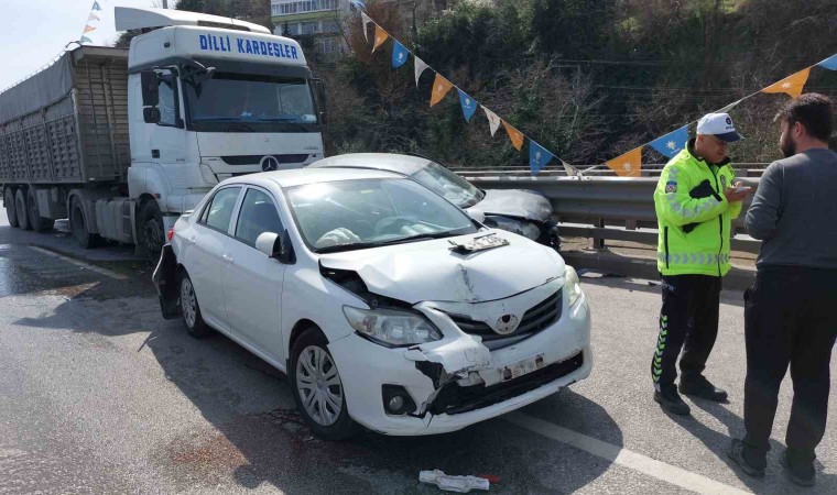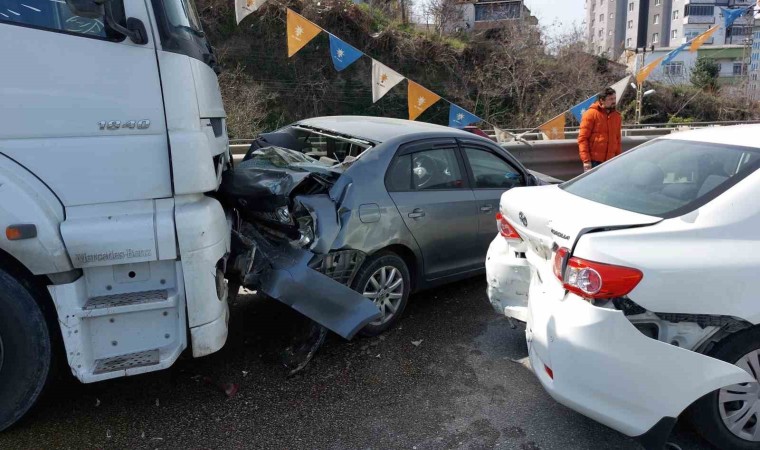 Kaza, Canik ilçesi Belediyeevleri Viyadüğü’nde meydana geldi. Edinilen bilgiye göre, Ümit Y. idaresindeki pancar küspesi yüklü 05 LB 317 plakalı tır, önünde seyreden polis memuru Serdar Köktaş yönetimindeki 06 DLH 130 plakalı otomobile çarpıp sürükledi. Tırın sürüklediği otomobil önündeki Tuna Çevik’in kullandığı 38 FB 238 plakalı otomobile, 38 plakalı otomobil de önündeki Şerif Ölmez’ın kullandığı 55 JY 284 Mercedes Vito marka araca arkadan çarptı. Zincirleme trafik kazasında araç sürücüleri Serdar Köktaş, Tuna Çelik ve Meryem Uluca yaralandı. Yaralılar, ambulanslarla Samsun Eğitim ve Araştırma Hastanesi ile Gazi Devlet Hastanesine kaldırılarak tedavi altına alındı.