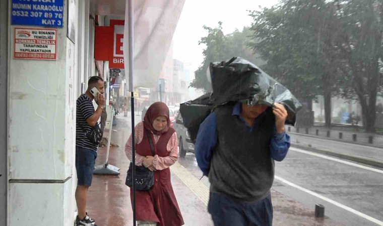 Samsun’da saat 12.30 itibarıyla sağanak kendini gösterdi. Yağmura hazırlıksız yakalanan vatandaşlar sırılsıklam olurken, yollar ise göle döndü. Araçlar su birikintisi olan yollarda gitmekte zorlanırken, vatandaşlar da ayakta durmakta güçlük çekti. 1 saati aşkın süre şiddetli şekilde yağan yağmurdan korunmaya çalışan vatandaşlar ilginç yöntemlere başvurdu. Yolda yürürken kayarak düşen vatandaşlar, yağmurdan kaçan vatandaşlar ve suda ilerlemeye çalışan araçlar ilginç görüntüler oluşturdu.