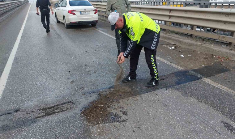 Kaza, Samsun’un Canik ilçesi Belediyeevleri Mahallesi’nde viyadük üstünde meydana geldi. Edinilen bilgiye göre, Ayhan Kadir Der idaresindeki 34 DTC 723 plakalı otomobil, önünde seyir eden Oğuzhan Cömert yönetimindeki 05 ADK 672 plakalı otomobile arkadan çarptı. Süleymen Kılıç hakimiyetindeki 55 EG 882 otomobil de önündeki araca çarpan 34 DTC 723 plakalı otomobile arkadan çarptı. Zincirleme trafik kazasında 55 plakalı otomobilde bulunan Hanife Kılıç yaralandı. Yaralı kadın ambulansla özel bir hastaneye kaldırılarak tedavi altına alındı. Araç sürücüsü Ayhan Kadir Der’in Samsunspor taraftarı olduğu, diğer araç sürücüsü Oğuzhan Cömer’in ise Beşiktaş taraftarı olduğu ve Samsunspor Beşiktaş arasında bu akşam oynanacak maça giderken kaza yaptıkları öğrenildi. Kazayla ilgili soruşturma başlatıldı.