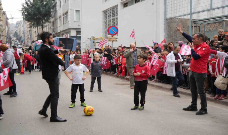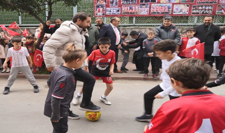 SAMSUN (İHA) – Samsunspor’un efsane futbolcuları Musa Aydın, Adnan Güngör ve Mehmet Nas, ilkokul öğrencileri ile sokak futbolu oynadı.
