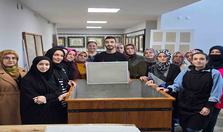 Düzce Üniversitesi Sanat Tasarım ve Mimarlık Fakültesi Geleneksel Türk Sanatları Bölüm Başkanı Doç. Dr. Yusuf Parlak, Kağıt Atölyesi’nde Kaynaşlı Meslek Yüksekokulu El Sanatları Bölümü öğrencilerine sanat eserleri için el yapımı kağıt ürettirdi.