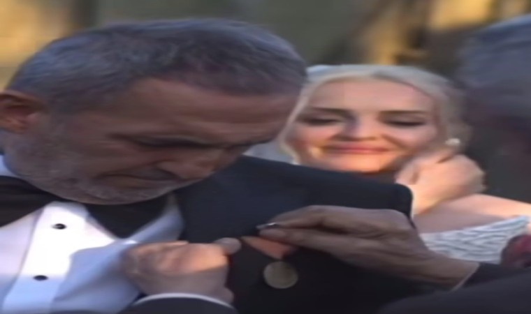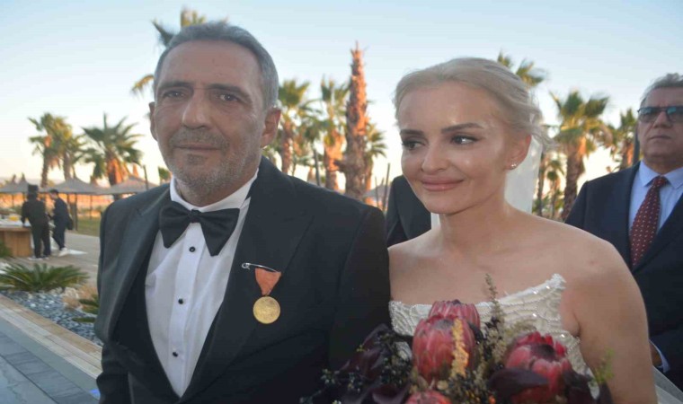 Balıkesir’in Ayvalık ilçesinde 5. kez nikah masasına oturan Sanatçı Yavuz Bingöl’e babası Yılmaz Bingöl, dedesine ait İstiklal Madalyası’nı nikah hediyesi olarak taktı.