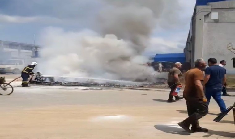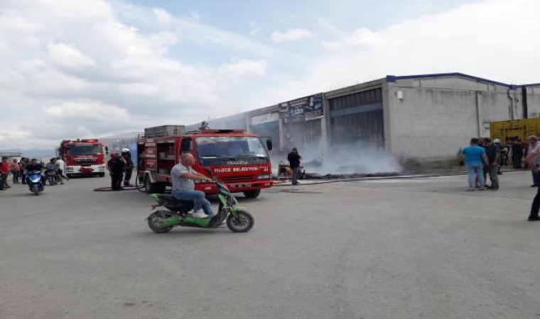 Düzce’de sanayi sitesinde ilaç tankında çıkan yangın kamyona sıçradı. Zamanında müdahale ile yangın kısa sürede kontrol altına alındı.