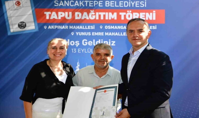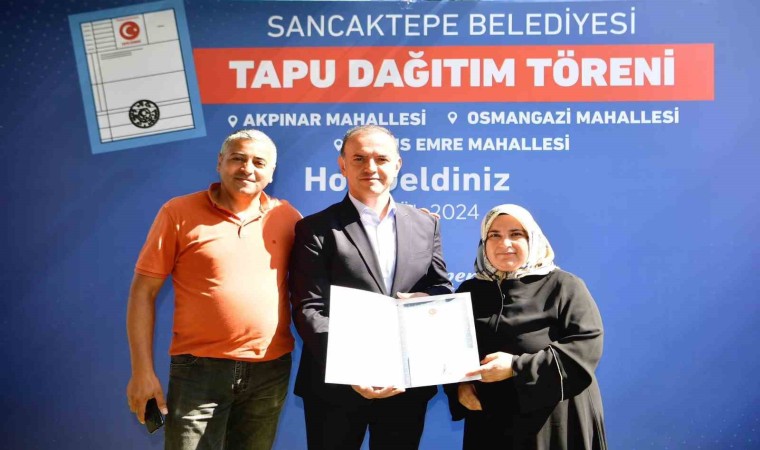 Sancaktepe Belediyesi tarafından Akpınar, Osmangazi ve Yunus Emre Mahallerinde oturan 49 hak sahibine tapuları belediye tarafından düzenlenen törenle verildi. Tapu töreninde konuşan Sancaktepe Belediye Başkanı Alper Yeğin, "49 komşunuza tapularını vereceğiz. Komşularınıza söyleyin rahat olsunlar, biz buradayken kimsenin malına kimse çökemez kimse yıkamaz" dedi.