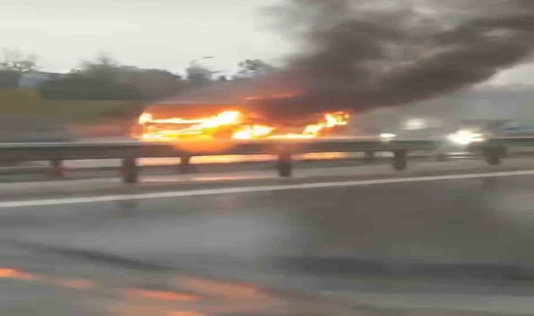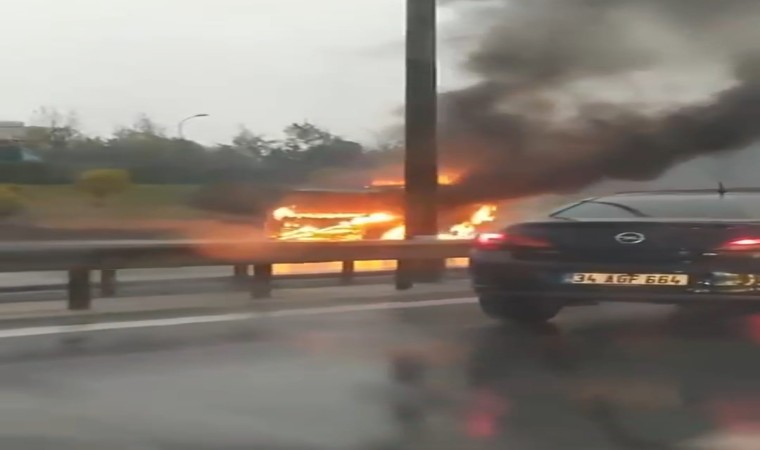 Sancaktepe’de TEM Otoyolu’nda yanan minibüs alev topuna döndü. Minibüsün alev alev yandığı o anlar kameralara yansıdı.