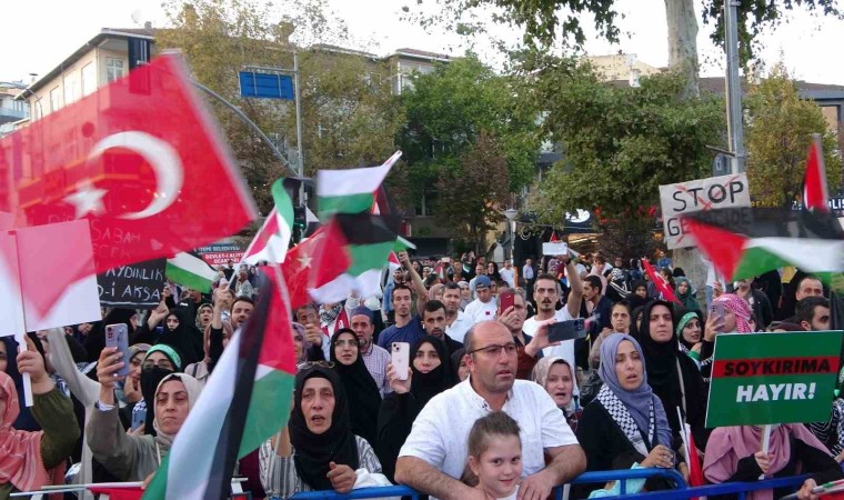 Samandıra Saat Kulesi önünde toplanan vatandaşlar, Kur’an-ı Kerim ve İstiklal Marşı okudu. Türk ve Filistin bayrağı sallayıp, Gazze’ye destek sloganları atan katılımcılar, "Kudüs İslam’ındır", "Kudüs Müslümanların Kırmızı Çizgisidir", "Filistin için İsrail’e boykot", "Kudüs Ümmetin kalbidir" yazılı pankart ve dövizler taşıdı.