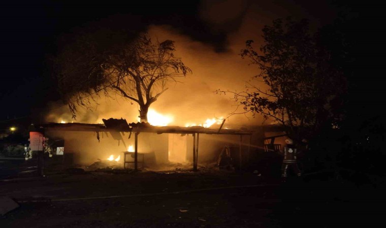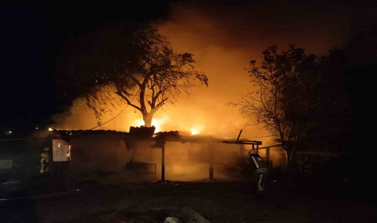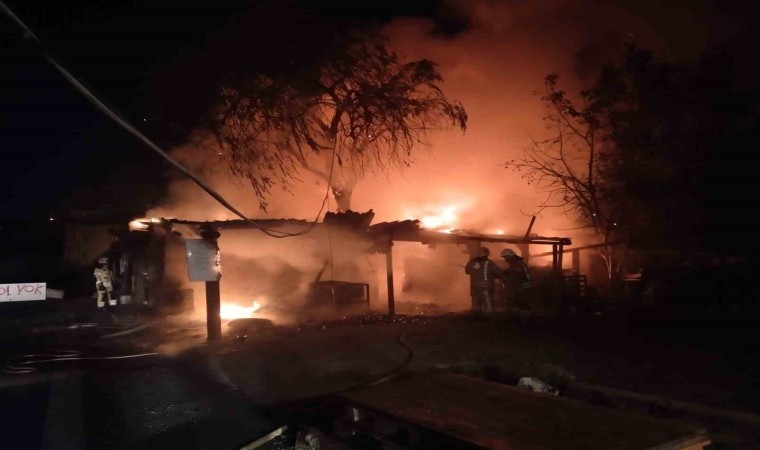 Sancaktepe’de hem iş yeri hem de ev olarak kullanılan bir gecekondu bilinmeyen bir nedenle alev alev yandı.