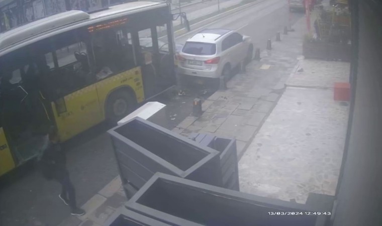 Sancaktepe’de aniden yan yoldan çıkan araca çarpmamak için direksiyonu kıran otomobil sürücüsü, karşıdan gelen İETT otobüsüyle kafa kafaya çarpıştı. Otomobilde bulunan 2 kişi yaralanırken, kaza anı güvenlik kamerasına yansıdı.
