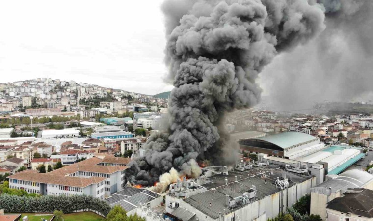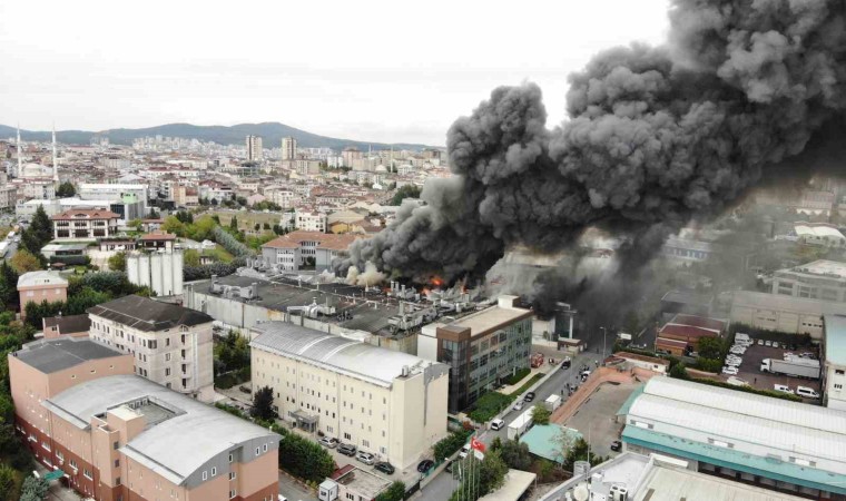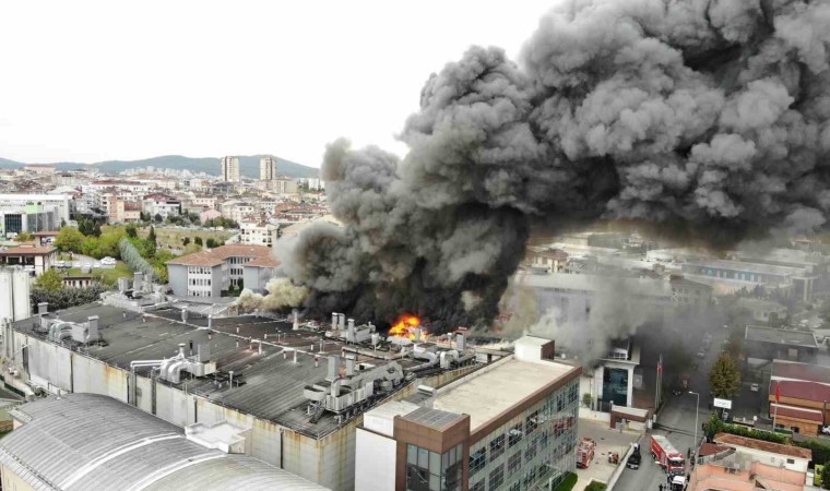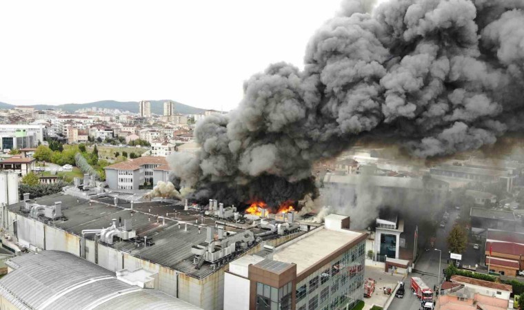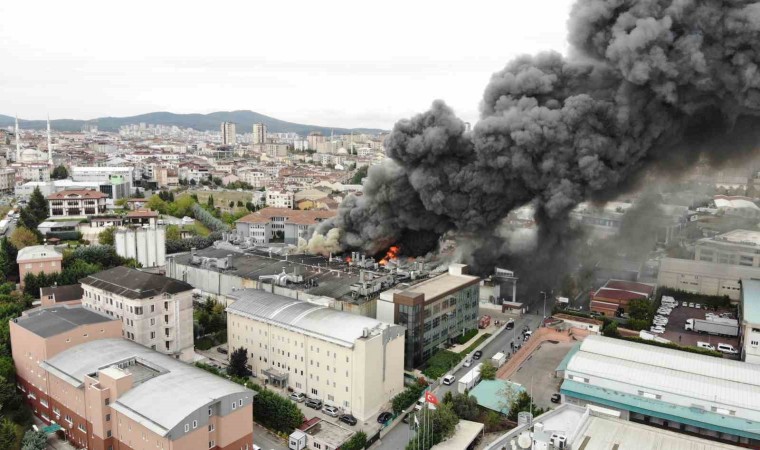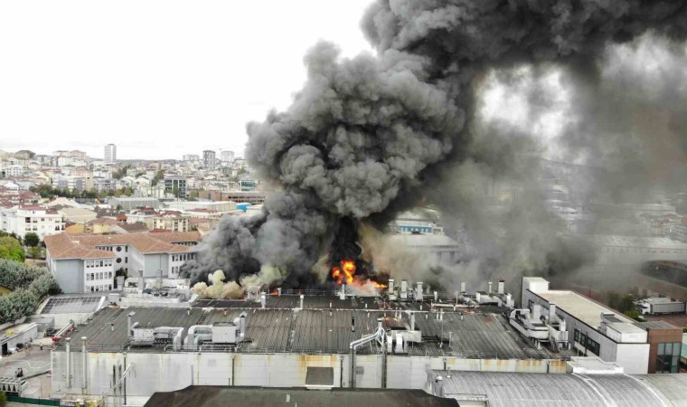 Sancaktepe’de soğuk hava deposunda yangın çıktı. İtfaiye ekiplerinin yangına müdahalesi sürerken, yanan depo ve yükselen dumanlar dron ile havadan görüntülendi.