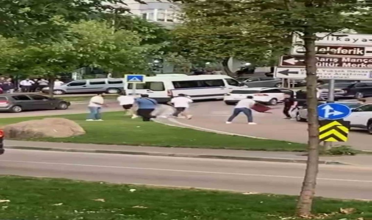 Çevredekiler durumu polise bildirirken, bazı vatandaşlar olaya müdahale etmek istedi. Kavga anı kameraya anbean yansırken, görüntüler meydan muharebesini aratmadı.