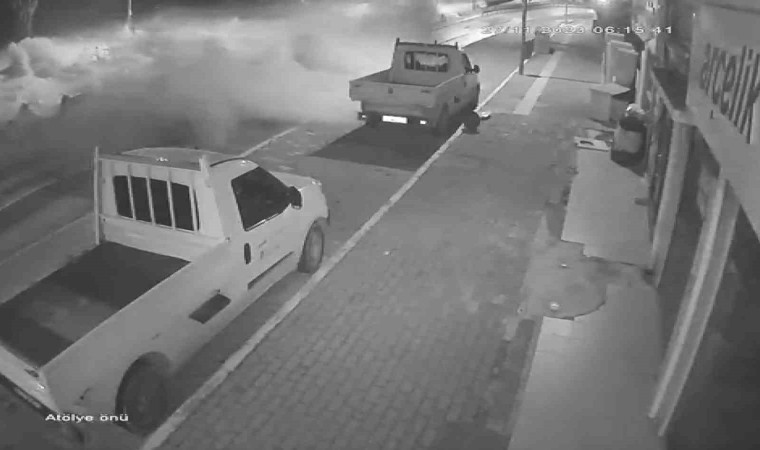 İnebolu ilçesinde de, dalgaların saniyeler içerisinde sahildeki cadde ve binaları sular altında bıraktığı anlar ise güvenlik kamerasına yansıdı. Görüntülerde dev dalgaların yolu aşarak park halindeki araçlar ve evlere vurduğu görülüyor.