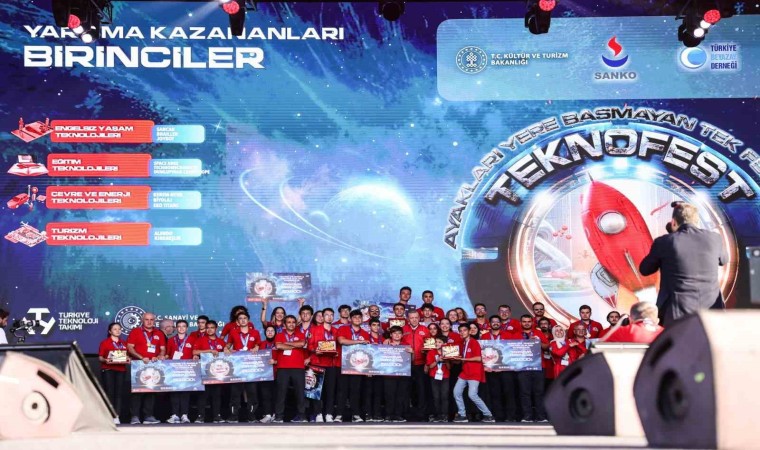 TEKNOFEST Akdeniz ödül töreni Cumhurbaşkanı Recep Tayyip Erdoğan’ın katılımıyla Adana Şakirpaşa Havalimanı’nda gerçekleştirildi. Çevre ve Enerji Teknolojileri Yarışması “İlkokul-Ortaokul” düzeyinde Türkiye birinciliği elde ederek büyük bir başarıya imza atan SANKO Okulları 8’inci sınıf öğrencileri Neva Doktoroğlu ve Kerem Utku Kaleli ile danışman öğretmenleri Fatih Mehmet Günaydın, birincilik ödülünü Cumhurbaşkanı Recep Tayyip Erdoğan’ın elinden aldı.