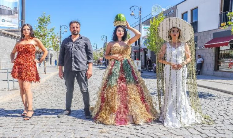 Selim KAYA/ DİYARBAKIR, (DHA)- DİYARBAKIRLI modacı Mehmet Kaymak, Urfa biberi, buğday başağı, yabani otlar ve tüylerden tasarladığı gelinliklerle Diyarbakır sokaklarında defile yaptı. Şanlıurfa biberinden yaptığı gelinliği dikerken acıyı iliğine kadar hissettiğini söyleyen Kaymak, ”Bugün o gelinliği giyen manken kardeşimiz de acıyı hissetmiştir. Biberler çok acıydı” dedi.