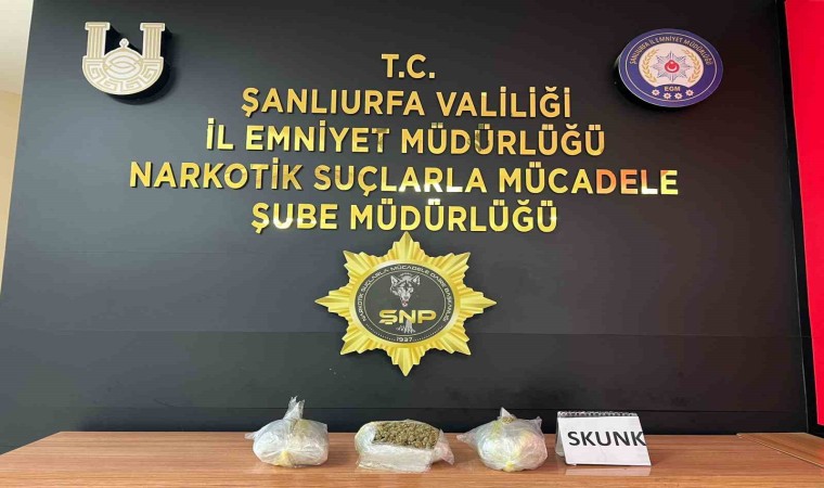 Şanlıurfa’da 1 kilo 600 gram skunk maddesi ele geçirildi, 1 şüpheli gözaltına alındı.