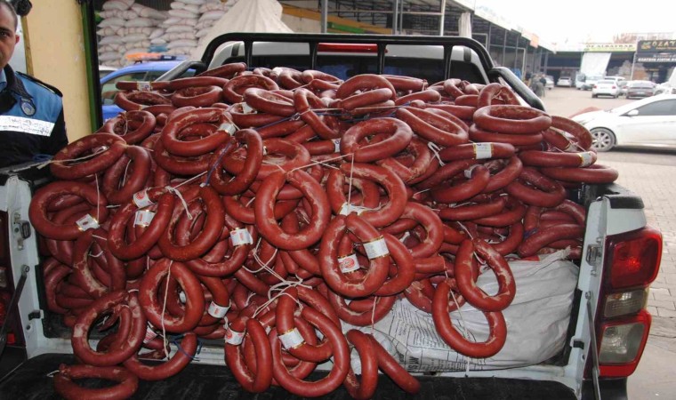 Şanlıurfa’da zabıta ekipleri, etiketsiz ve dana eti diye satılan 1 ton sahte sucuk ele geçirdi.