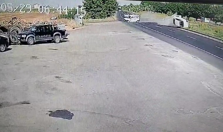 Şanlıurfa’da hafif ticari araç ile otomobilin çarpışması sonucu 3 kişinin yaralandığı kaza anı güvenlik kamerasınca kaydedildi.