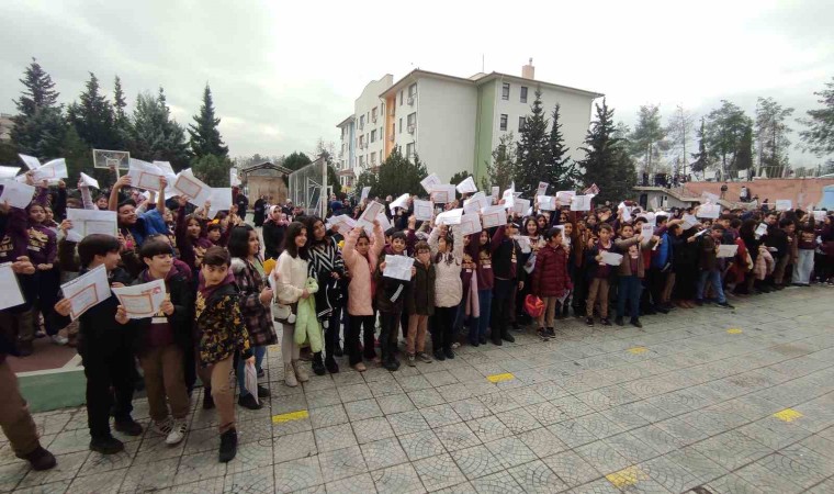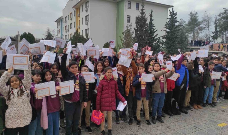 Takdir ve teşekkür belgesi alan öğrenciler, başarılarının mimarı olan öğretmenlerine teşekkür etti, yarıyıl tatilini güzel bir şekilde değerlendireceklerini söyledi.