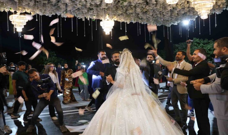 Karaköprü Belediye Başkanı Nihat Çiftçi’nin kıydığı nikahta, AK Parti ve CHP’li siyasetçiler de şahitlik yaptı. Düğün, bölgenin sevilen sanatçıları Yusuf Harputlu ve Kemale Amed’in unutulmaz düetleri eşliğinde coşkuyla kutlandı. Davetliler, gelin ve damadın mutluluğunu paylaşmak için dolar ve Türk Lirası banknotlarını havaya saçtılar. Paralar, orkestra tarafından görevlendirilen kişiler tarafından toplanarak çantalara konuldu.