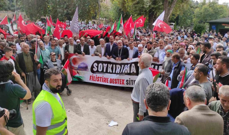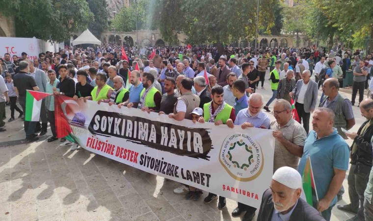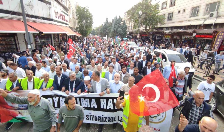 Şanlıurfa’da İsrail’in saldırıları sonucu Filistin’de hayatını kaybedenler için gıyabi cenaze namazı kılındı. Kılınan namazın ardından binlerce kişi düzenlenen yürüyüşe katıldı.