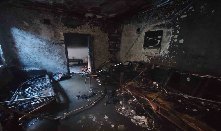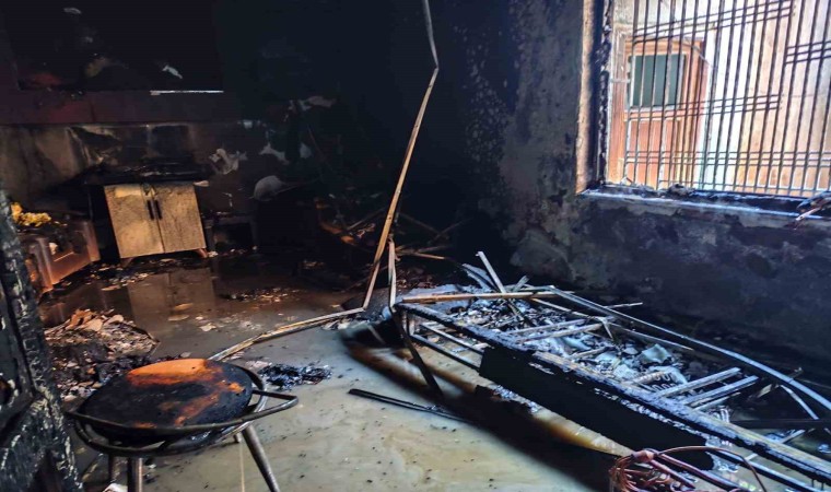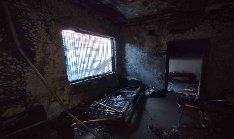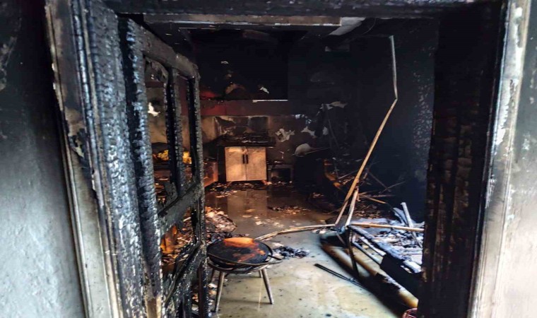 Yangın sonucu evde büyük hasar meydana gelirken, olayla ilgili inceleme başlatıldı.
