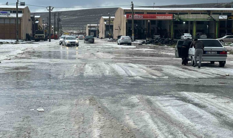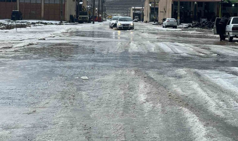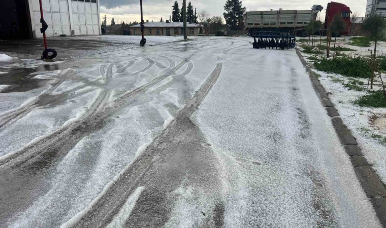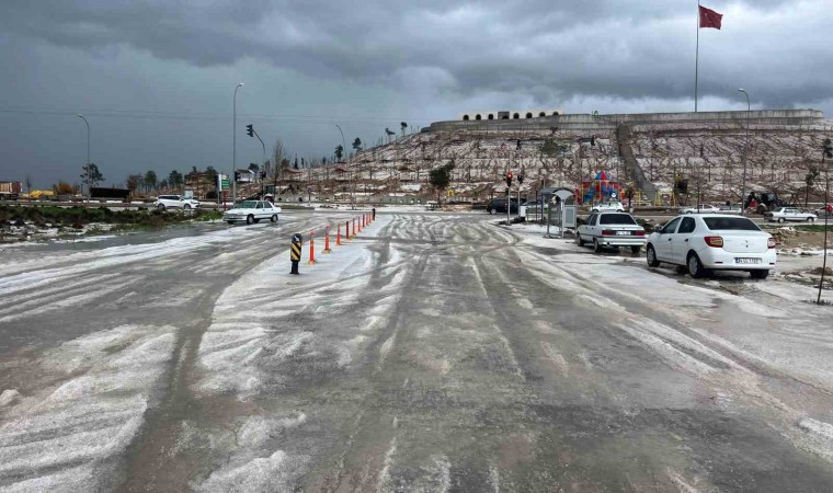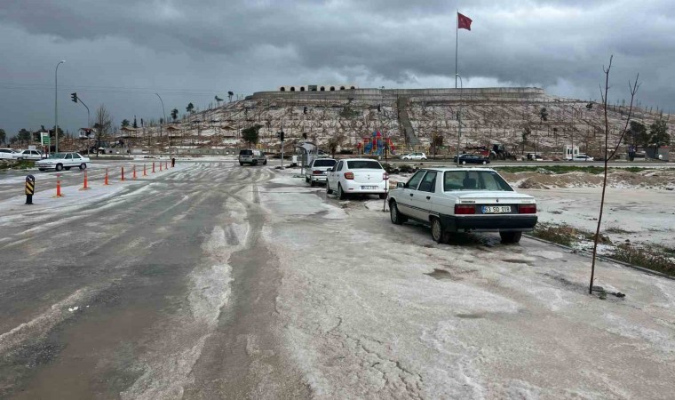 Şanlıurfa’nın Ceylanpınar ilçesinde aniden başlayan şiddetli dolu kenti beyaza bürüdü.