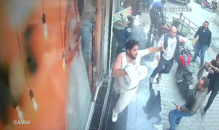Şanlıurfa’da bir fotoğraf stüdyosuna gelen muhtar ve yakınları, akrabalarına ait borç yüzünden ortalığı savaş alanına çevirdi. Fotoğrafçı ve kardeşinin tekme, tokat ve sopalarla darp edildiği anlar iş yerinin güvenlik kamerasına yansıdı.