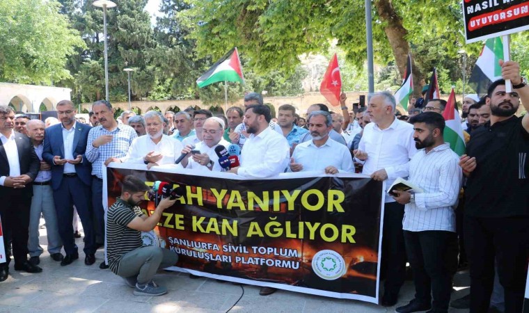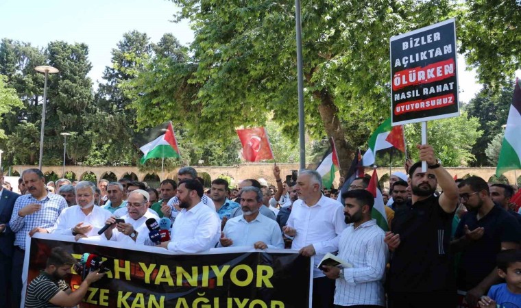 Şanlıurfa’da cuma namazı sonrası Filistin’de zulüm altındaki mazlumlar için dualar edildi, İsrail’e tepki gösterildi.