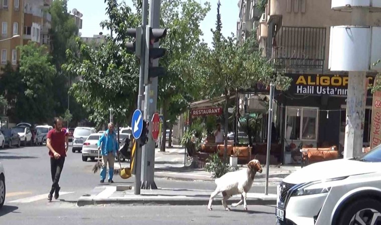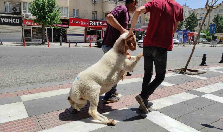 Şanlıurfa’da kesilmek üzere kasaba götürülen kurbanlık koç, sahibinin elinden kaçtı. Kaçan kurbanlık koç, cadde ve sokaklarda sahiplerine zor anlar yaşattı. Uzun uğraşlar sonucu yakalanan koç, kesilmek üzere tekrar kasaba götürüldü.