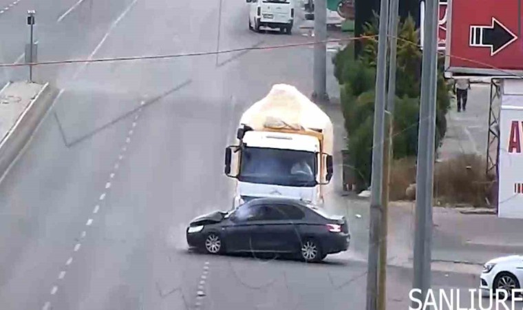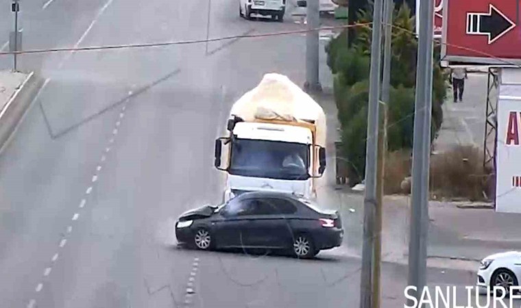 İkinci kaza ise, Şanlıurfa - Gaziantep karayolunun Evren Sanatı Sitesi mevkisinde meydana geldi. Yolun karşı tarafından ters şeride girerek kontrolü bir şekilde ilerleyen kum yüklü hafriyat kamyonu, akaryakıt istasyonundan çıkan otomobil ile çarpıştı. Kazada, otomobil sürücüsü hafif yaralandı. Yaşanan her iki kaza Şehir Polis Kamerasına yansıdı.