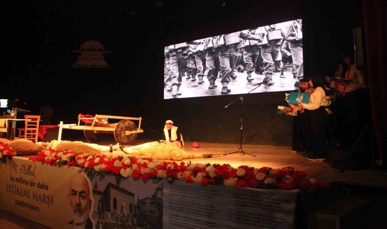 Programda öğrenciler, İstiklal şairi Mehmet Akif Ersoy’un şiirlerini okuyup tiyatro gösterisi sergiledi. Tiyatro gösterisi ile Kurtuluş Savaşı’nın canlandırmasını yapan öğrenciler, izleyicilere duygu dolu anlar yaşattı. Vali Hasan Şıldak, öğrencileri başarılı performanslarından dolayı tek tek tebrik etti.