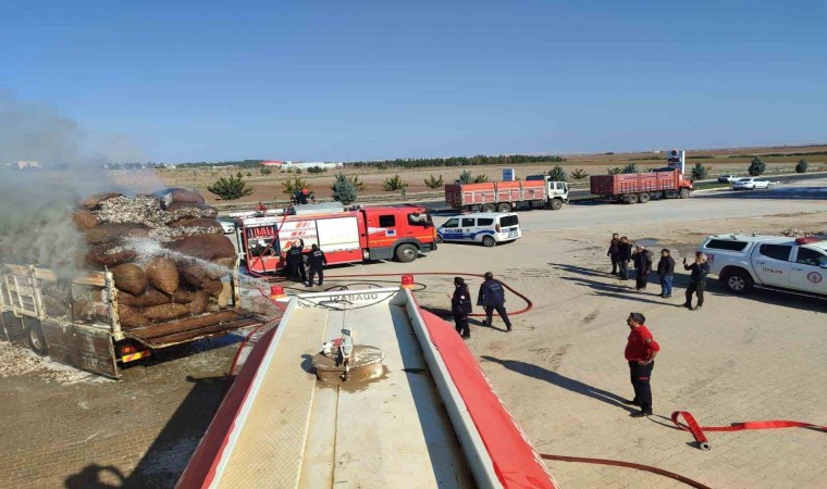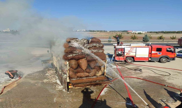 Şanlıurfa’da seyir halindeki pamuk yüklü kamyonda çıkan yangını itfaiye ekipleri söndürdü.