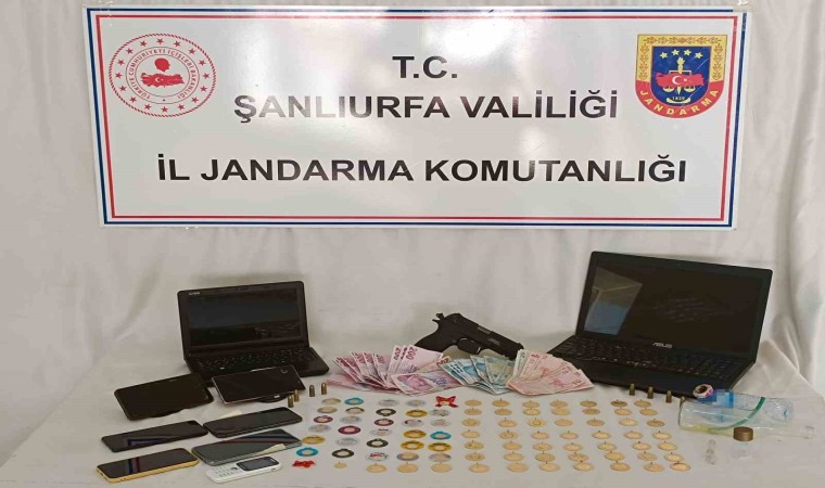 Kahramanmaraş’ta ikamet eden O.K. isimli vatandaş, kendisini hakim ve savcı olarak tanıtan kimliği belirsiz kişi ve kişiler tarafından telefonla aranarak terör örgütlerine finansman sağladığı gerekçesiyle kendisinden para talep edildi. O.K. Kahramanmaraş’tan Şanlıurfa’ya gelerek burada tanımadığı iki erkek ve bir kadına 58 bin 400 TL, 52 adet cumhuriyet altını, 29 adet gram altın, 3 adet çeyrek altın olmak üzere toplamda 750 bin TL değerinde nakit ve ziynet eşyasını teslim ettiğini bildirdi. O.K., şüpheli şahıslara bir daha ulaşamaması üzerine dolandırıldığını anlayarak jandarma ekiplerinden yardım istedi. Şanlıurfa İl Jandarma Komutanlığına bağlı Eyyübiye İlçe Jandarma Komutanlığı ve Jandarma Suç Araştırma Timleri (JASAT), faillerin tespiti ve yakalanması için çalışma başlattı. Ekipler, şüphelileri kısa sürede tespit ederek araçlarını takibe aldı. Şüphelilerin durdurulan aracında yapılan aramalarda, dolandırdıkları vatandaştan aldıkları tüm para ve altınlar ele geçirildi. Aramalarda ayrıca ruhsatsız tabanca ile farklı miktarlarda esrar ve metamfetamin maddesi de ele geçirildi.