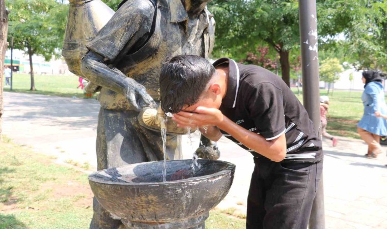 Şanlıurfa’da termometreler 50 dereceyi gösterdi. Vatandaşlar çeşme başlarında serinledi.