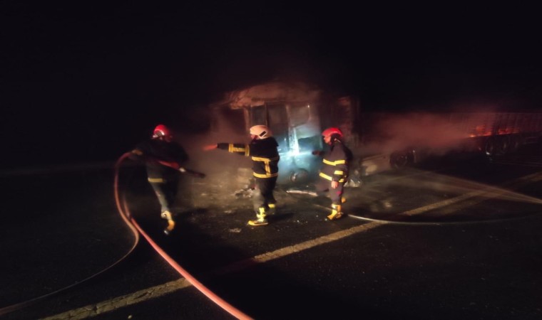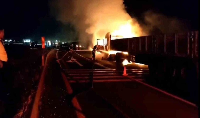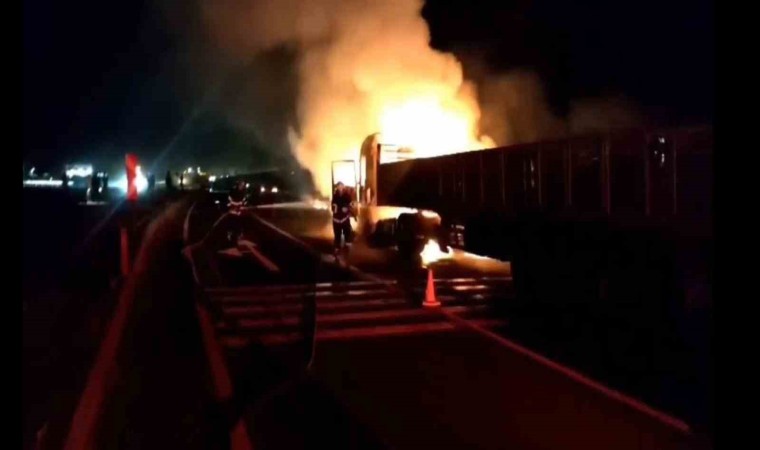 Şanlıurfa-Mardin karayolunda dorsesi boş olan tır, alev alarak yandı.