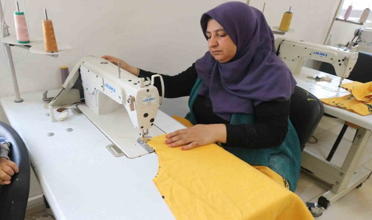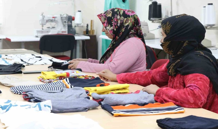 Şanlıurfa’da kadın destek merkezlerinde eğitim gören kursiyerler, ihtiyaç sahibi aileler için kıyafet dikiyor.