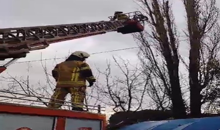 İzmir’in Beydağ ilçesinde sansardan korkup ağaca çıkan ve mahsur kalan kedi, itfaiye ekipleri tarafından kurtarıldı.