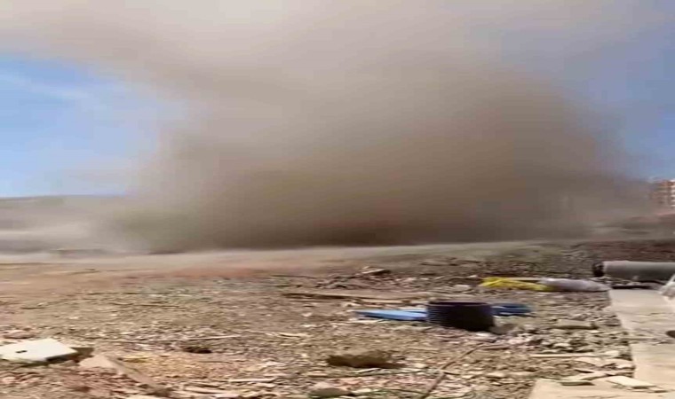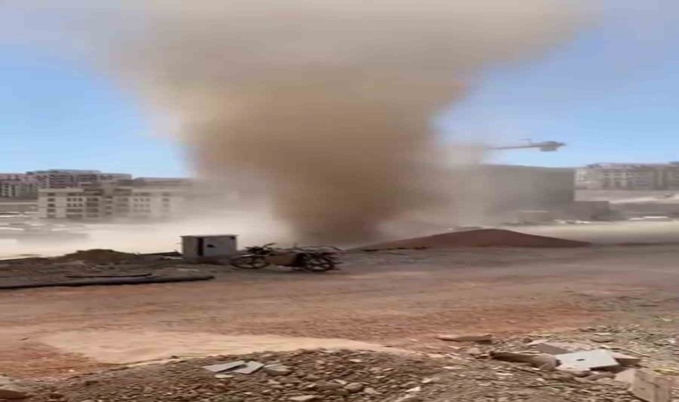Hatay’da inşaat sahası içerisinde çıkan hortumda herhangi bir olumsuzluk yaşanmazken o anlar kameraya yansıdı.