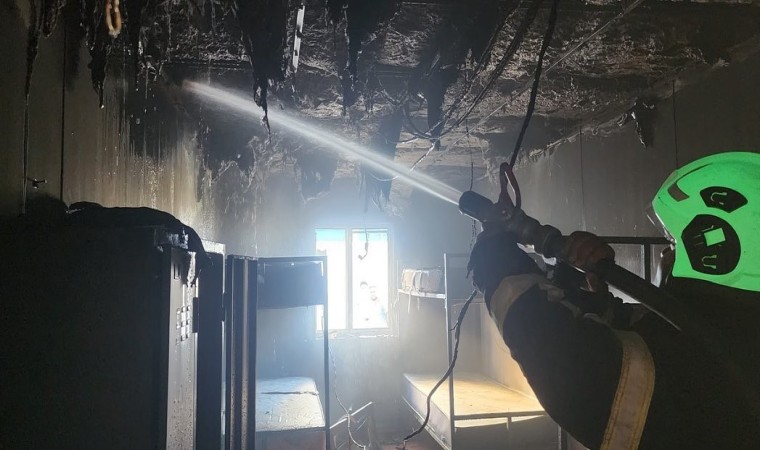 Hatay’da şantiye alanında işçilerin kaldığı yatakhanede çıkan yangın korkuttu.