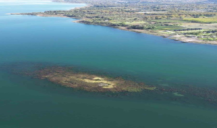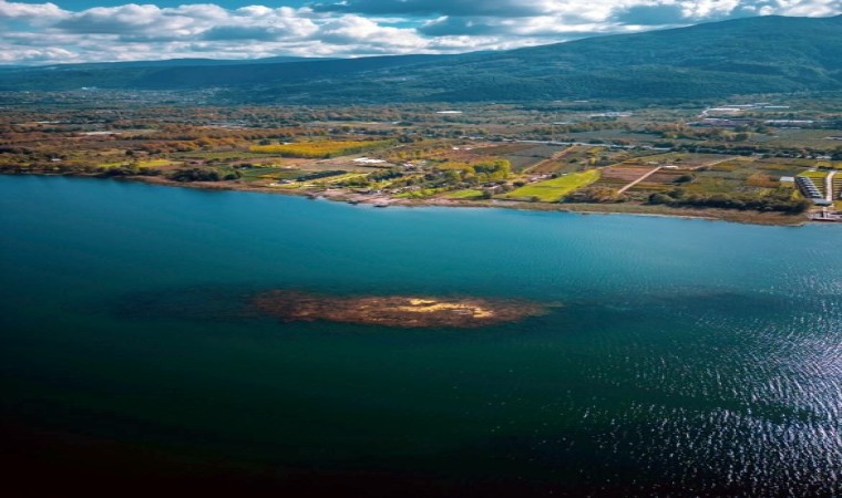 Sakarya ve Kocaeli’de milyonlarca kişinin içme su ihtiyacını karşılayan ve kuraklık sebebi ile son 5 yılın en düşük seviyesine düşen Sapanca Gölü’nde tarihi taş kalıntıları ortaya çıktı. Havadan da görüntülenen ve merak uyandıran taş kalıntılarını cep telefonu ile kayıt altına alan balıkçılar, “Su seviyesi alçaldığında Sapanca’da ortaya çıkan yapı. Kale, cami veya kaya diyen var” ifadelerine yer verdi.