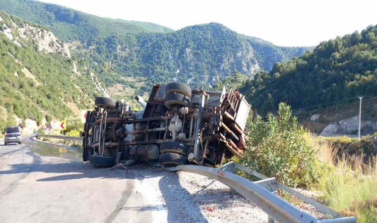 Kahramanmaraş’ın Andırın ilçesinde sürücüsünün direksiyon hakimiyetini kaybettiği kamyon şarampole devrildi. Kazada sürücü yaralandı.