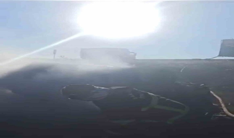 Kaza sonrası araç olay yerine çağrılan itfaiye ekiplerince söndürülürken, otomobil küle döndü.