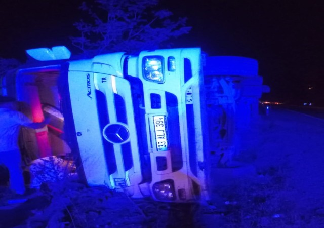 ADIYAMAN'IN GÖLBAŞI İLÇESİNDE TIRIN ŞARAMPOLE DEVRİLMESİ SONUCU 1 KİŞİ YARALANDI.