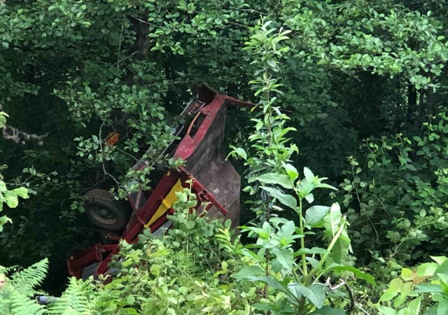 Şarampole yuvarlanan kamyon ağaçta asılı kaldı: 1 yaralı